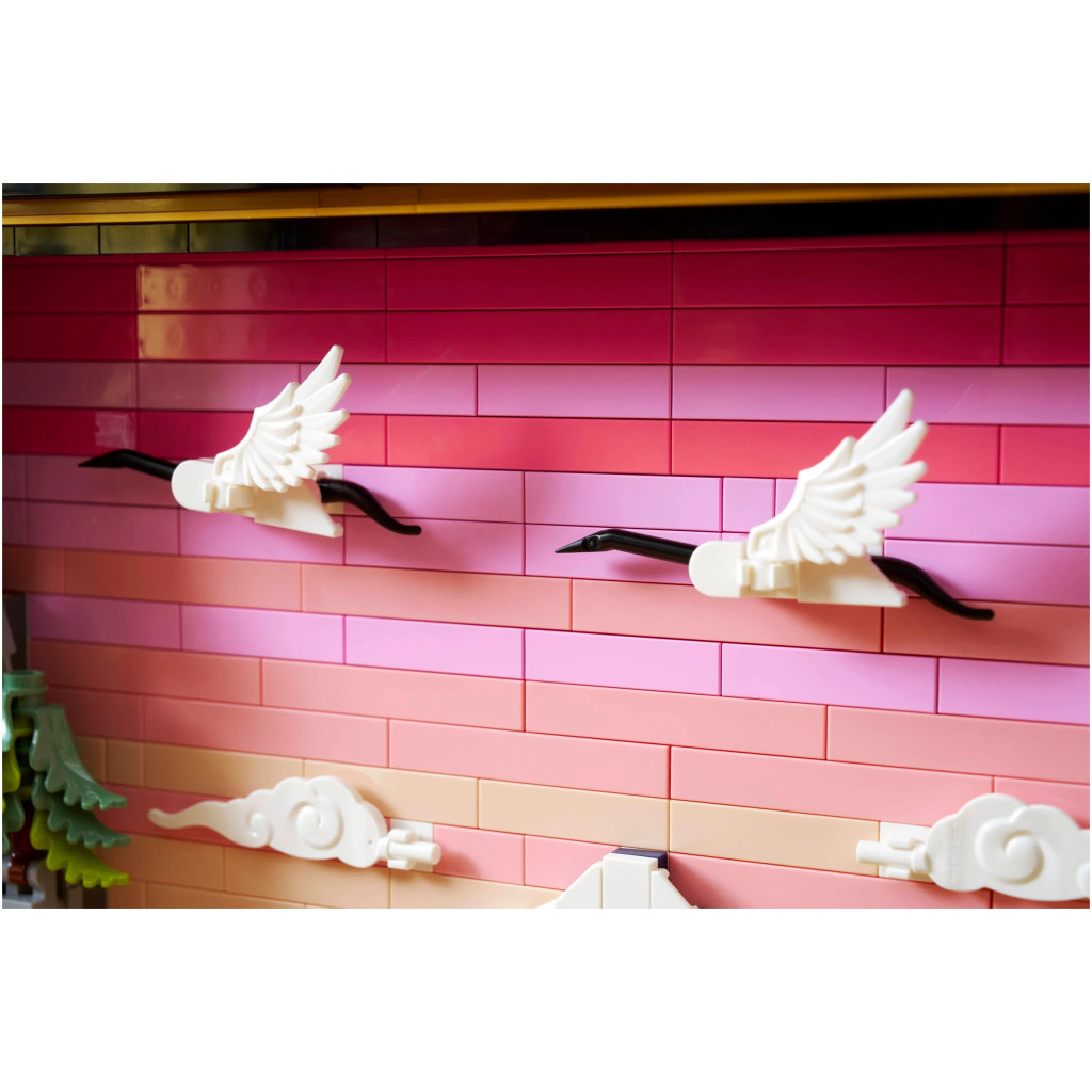 • TISZTELGÉS JAPÁN ELŐTT – Ez a hagyományos japán táj LEGO® kockákból újraalkotott változata a Fuji-hegyet, egy teaházat, japán darvakat, „Sango-Kaku” juharfákat, cseresznyevirágokat és japán ernyőfenyőket ábrázol.
